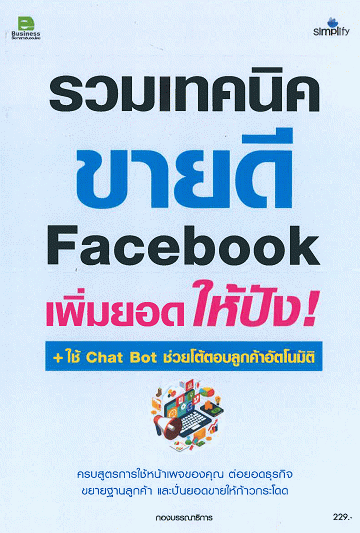 จะ"ขายของ" ของขาย ต้องมี หน้า 1-18 -- สร้างและตั้งค่าเพจอย่างเป็นระบบ หน้า 19-42 -- ปรับกราฟิกบนเพจสร้างจุดสนใจ หน้า 43-54 -- เพิ่มส่วน "ร้านค้า" เพิ่มการเข้าถึง หน้า 55-70 -- ปรับแต่งเพจและเพิ่มเติมข้อมูล หน้า 71-84 -- สร้างระบบตอบกลับอัตโนมัติ หน้า 85-92 -- เพิ่มลูกเล่นการตอบกลัลแพลตฟอร์ม Chat Bot หน้า 93-120 -- โพสต์ ไลก์ แชร์ เสิร์ฟสินค้าให้กระจาย หน้า 121-152 -- เตรียมความพร้อมก่อนลงโฆษณา หน้า 153-168 -- สร้าง Facebook Ad อย่างไร? ให้เข้าถึงกลุ่มเป้าหมาย หน้า 169-186 -- ขยายธุรกิจให้เติบโตด้วยการโปรโมท หน้า 187-204 -- เชิงรับ เชิงรุก เพิ่มยอดขาย หน้า 205-214