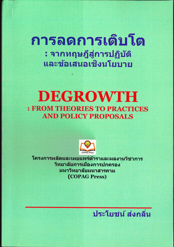 การลดการเติบโต : จากทฤษฎีสู่การปฏิบัติและข้อเสนอเชิงนโยบาย = Degrowth : from theories to practices and policy proposals / ประโยชน์ ส่งกลิ่น