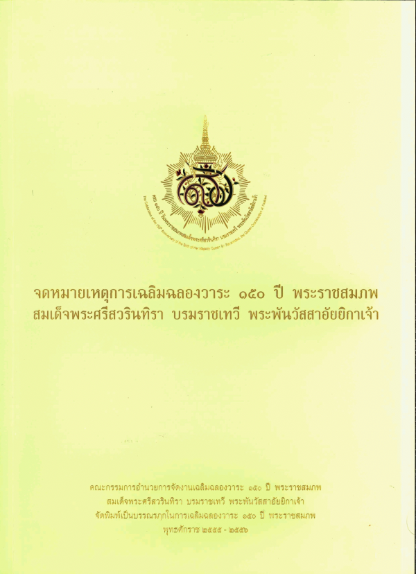 จดหมายเหตุการเฉลิมฉลองวาระ 150 ปี พระราชสมภพสมเด็จพระศรีวรินทิรา บรมราชเทวี พระพันวัสสาอัยยิกาเจ้า / วิกัลย์ พงศ์พนิตานนท์ ; บรรณาธิการ