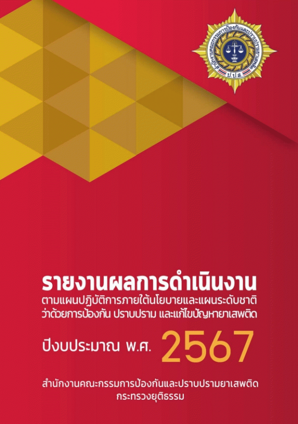 รายงานผลการดำเนินงานตามแผนปฏิบัติการภายใต้นโยบายและแผนระดับชาติว่าด้วยการป้องกัน ปราบปราม และแก้ไขปัญหายาเสพติด ปีงบประมาณ พ.ศ. 2567 / สำนักงานคณะกรรมการป้องกันและปราบปรามยาเสพติด กระทรวงยุติธรรม
