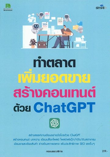 ประโยชน์ของการใช้ ChatGPT สร้างเนื้อหา หน้า 1-16 -- เริ่มต้นใช้งาน ChatGPT หน้า 17-32 -- ใช้งาน ChatGPT ช่วยเขียนบล็อก หน้า 33-58 -- ใช้งาน ChatGPT ช่วยเขียนโพสต์โซเชียลมีเดีย หน้า 59-82 -- ใช้ ChatGPT ช่วยเขียนอีเมลการตลาด หน้า 83-102 -- ใช้ ChatGPT ช่วยเขียนคำอธิบายผลิตภัณฑ์ หน้า 103-118 -- ใช้ ChatGPT ช่วยเพิ่มประสิทธิภาพการค้นหา (SEO) หน้า 119-130