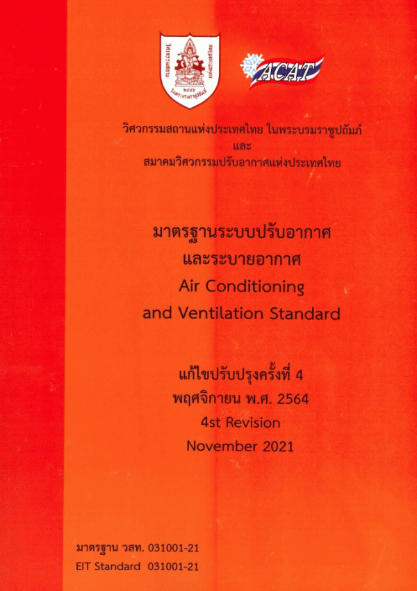 มาตรฐานระบบปรับอากาศและระบายอากาศ / คณะทำงานจัดทำมาตรฐานระบบระบบปรับอากาศและระบายอากาศ วิศวกรรมสถานแห่งประเทศไทย ในพระบรมราชูปถัมภ์