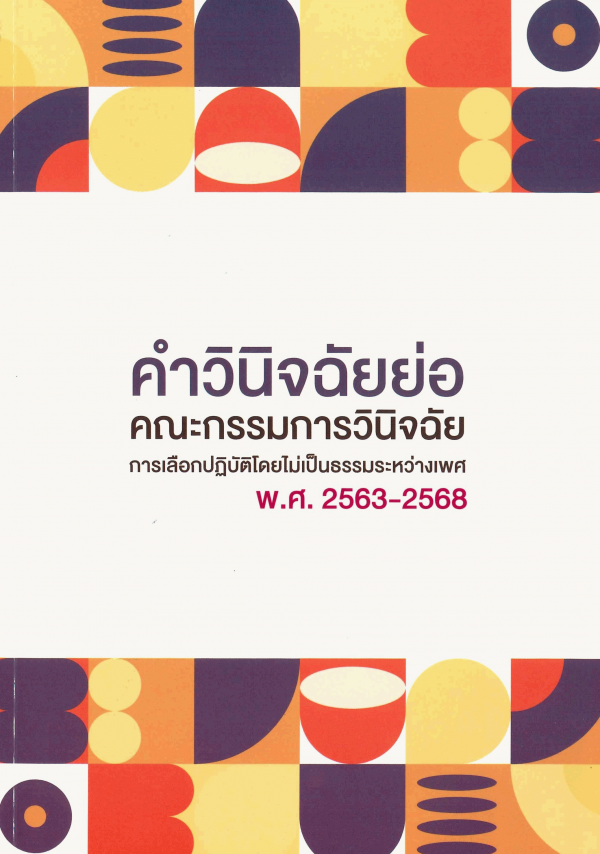 คำวินิจฉัยย่อคณะกรรมการวินิจฉัยการเลือกปฏิบัติโดยไม่เป็นธรรมระหว่างเพศ พ.ศ. 2563-2568 / คณะผู้จัดทำ กลุ่มคณะกรรมการวินิจฉัยการเลือกปฏิบัติโดยไม่เป็นธรรมระหว่างเพศ กองส่งเสริมความเสมอภาคระหว่างเพศ