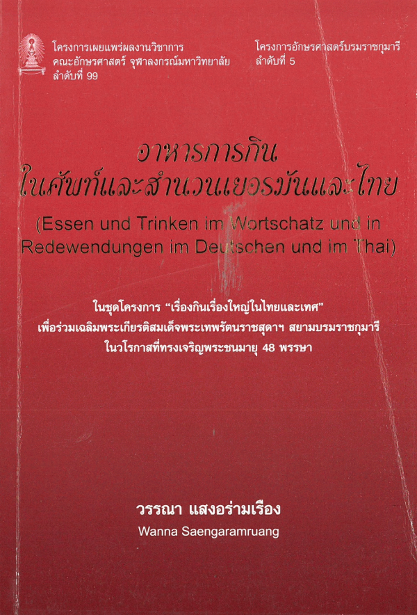 อาหารการกินในศัพท์และสำนวนเยอรมันและไทย = Essen und trinken im wortschatz und in redewendungen im Deutschen und im Thai / วรรณา แสงอร่ามเรือง