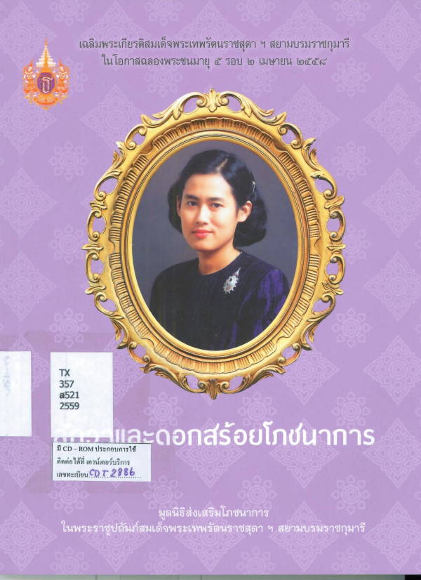Publication details: นครปฐม : มูลนิธิส่งเสริมโภชนาการ ในพระราชูปถัมภ์ สมเด็จพระเทพรัตนราชสุดาฯ สยามบรมราชกุมารี, 2559