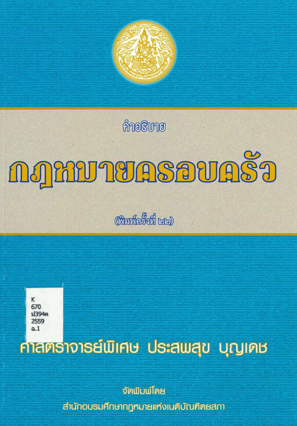 Publication details: กรุงเทพฯ : สำนักอบรมศึกษากฎหมายแ่ห่งเนติบัณฑิตยสภา, 2559