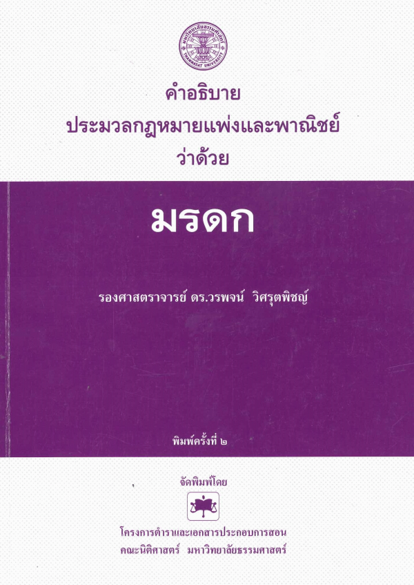 Publication details: กรุงเทพฯ : โครงการตำราและเอกสารประกอบการสอน คณะนิติศาสตร์ มหาวิทยาลัยธรรมศาสตร์, 2549