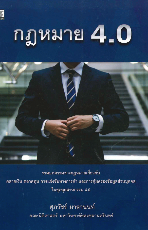 Other title: - กฎหมาย 4.0 : รวมบทความทางกฎหมายเกี่ยวกับตลาดเงิน ตลาดทุน การแข่งขันทางการค้า และการคุ้มครองข้อมูลส่วนบุคคล ในยุคอุตสาหกรรม 4.0