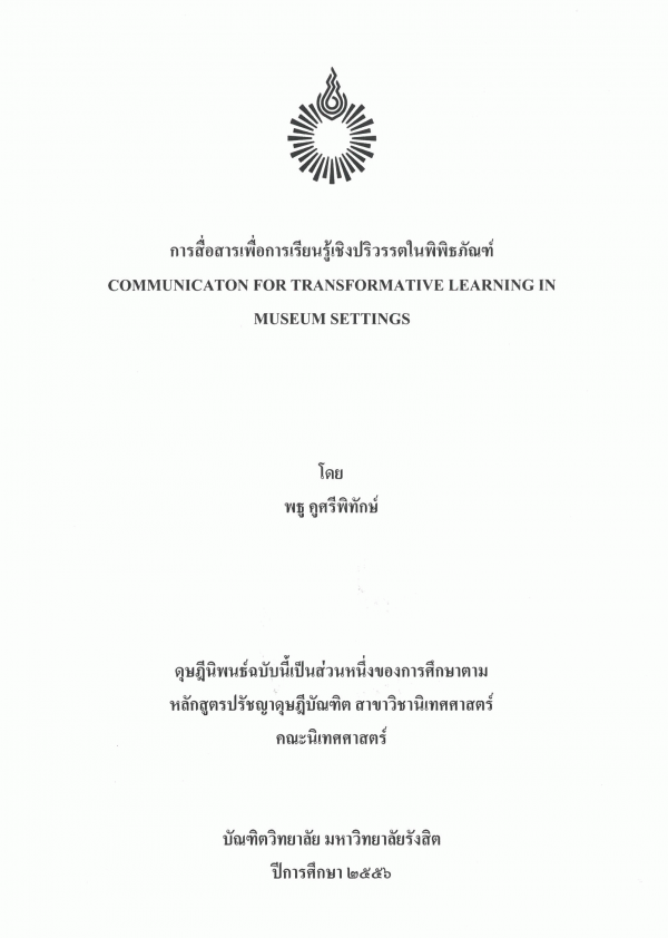 Publication details: กรุงเทพฯ : สถาบันพิธภัณฑ์การเรียนรู้แห่งชาติ, 2558